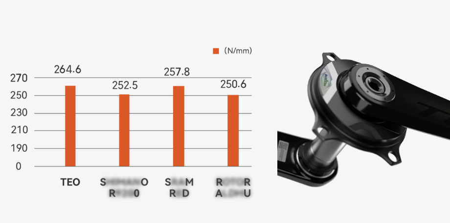 Testen beviser, at TEO-krankene i carbon udviser minimal deformation, hvilket giver enestående stivhed. TEO-krankene i carbon er grundigt testet og opretholder et enestående forhold mellem stivhed og vægt uden at gå på kompromis med den ultralette ydeevne. Hvert pedaltræk giver urokkelig selvtillid, og din kraftoutput forringes aldrig.