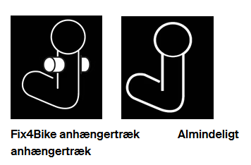 Herunder kan du se forskellen mellem et Fix4Bike anhængertræk og et almindeligt anhængertræk.